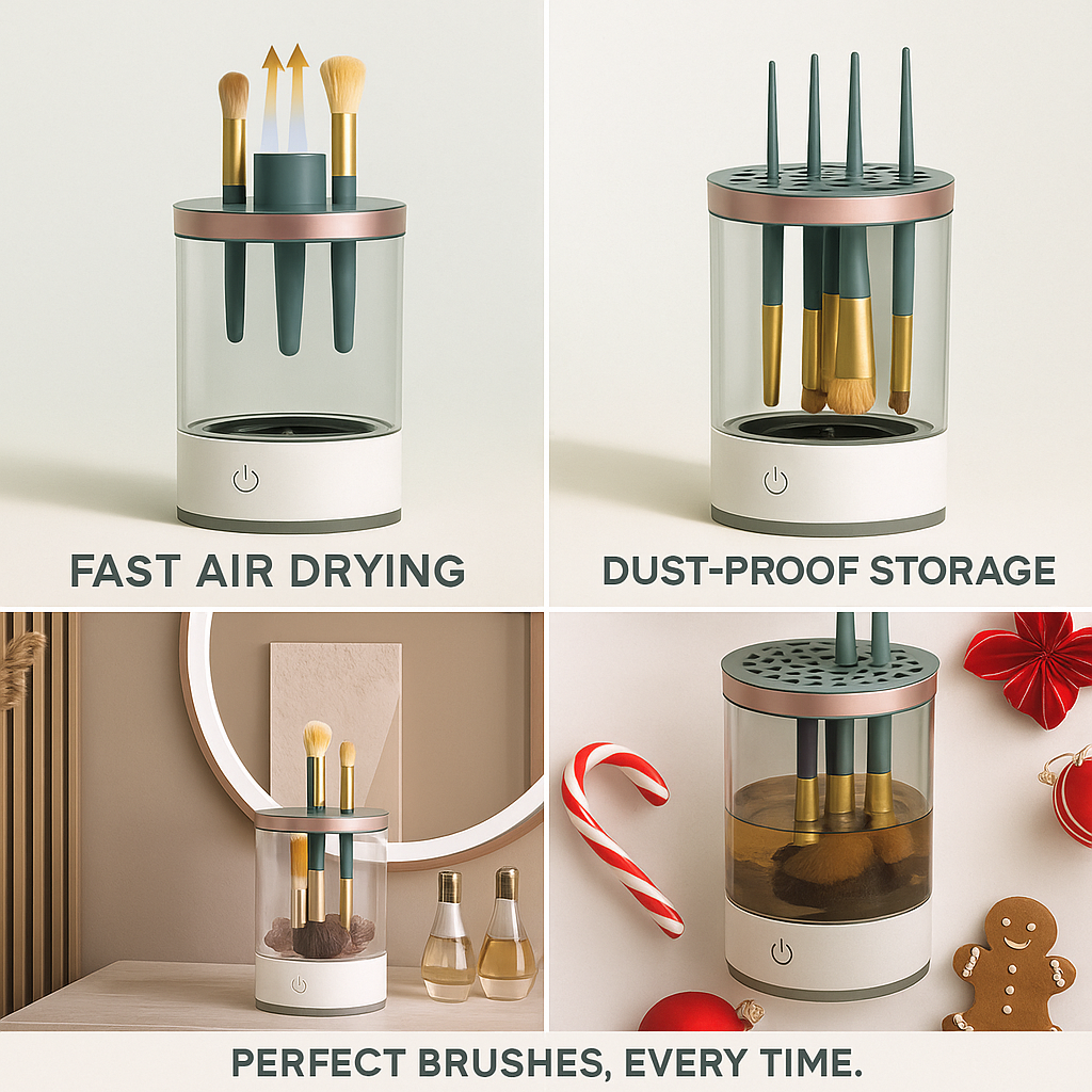 Limpia y seca tus brochas al instante.